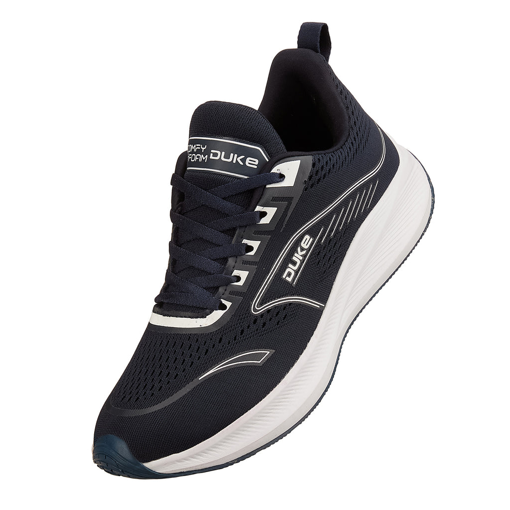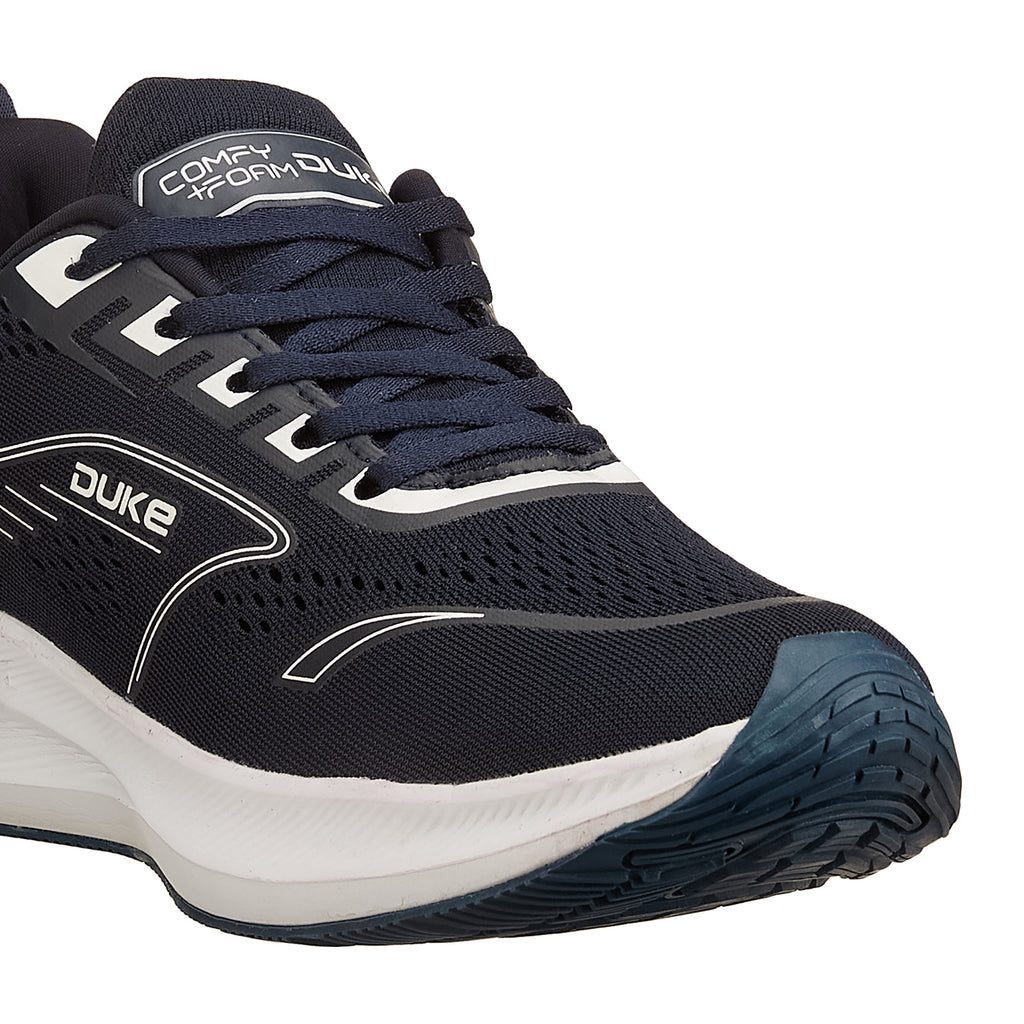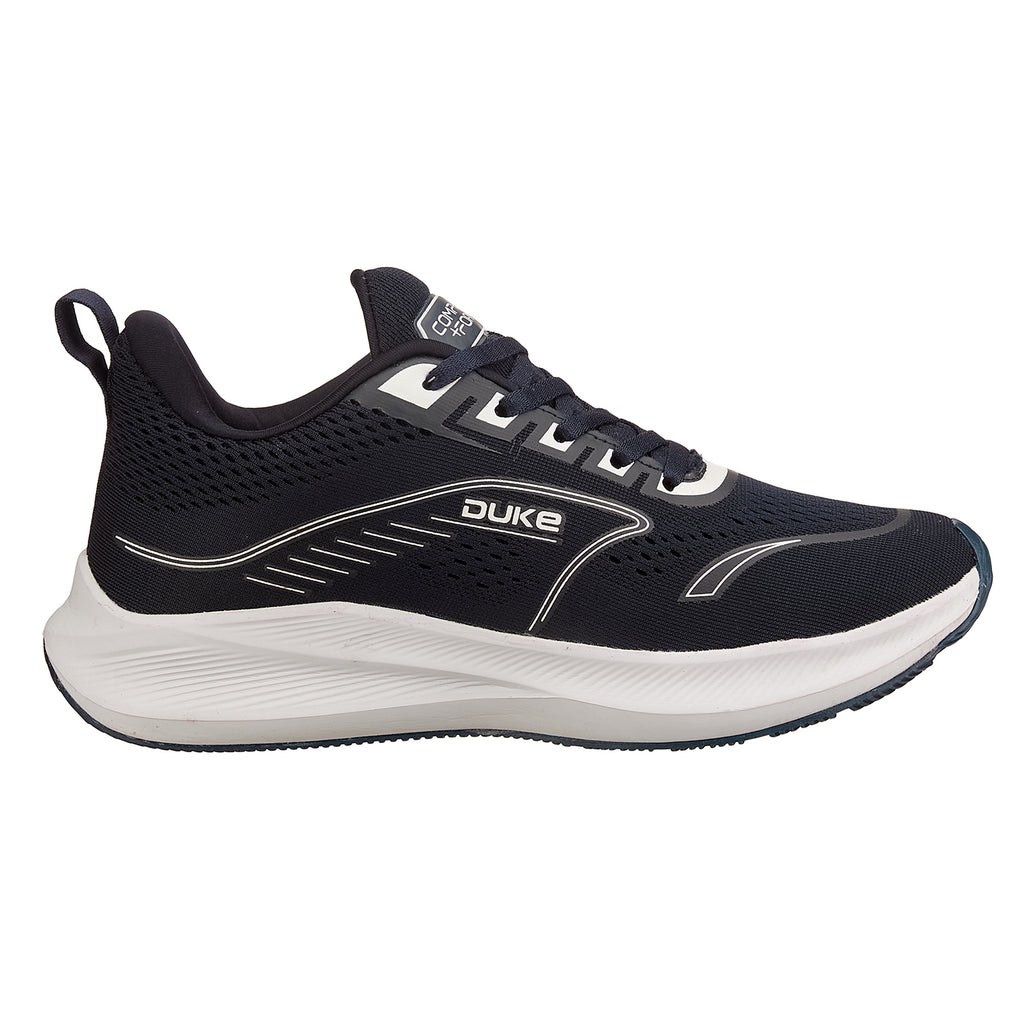 Duke Men Running Sports Shoes are engineered for speed and comfort. The mesh upper keeps your feet cool during intense runs, while secure lace-ups lock you in place. Memory foam insoles provide personalized arch support, and the responsive Phylon sole delivers cushioning with every stride. The solid contrast pattern adds contemporary style to your performance gear.