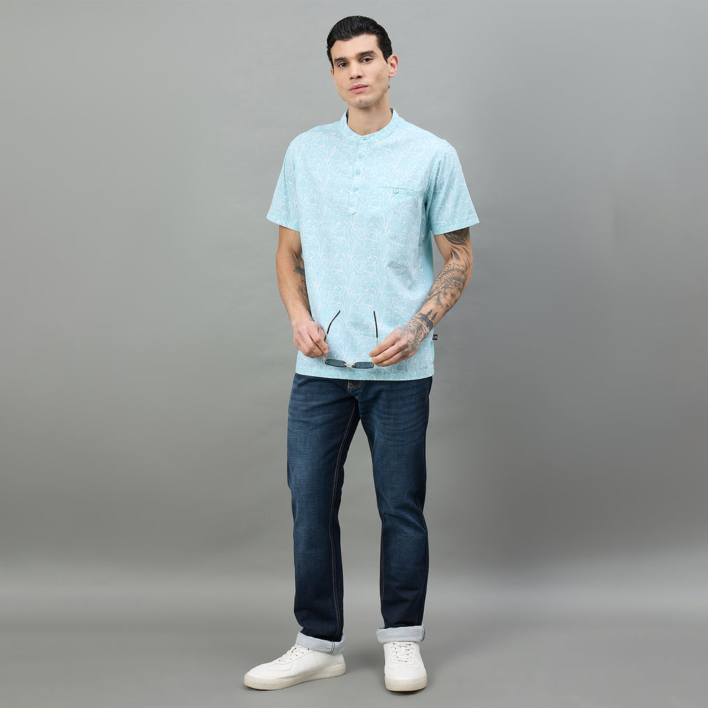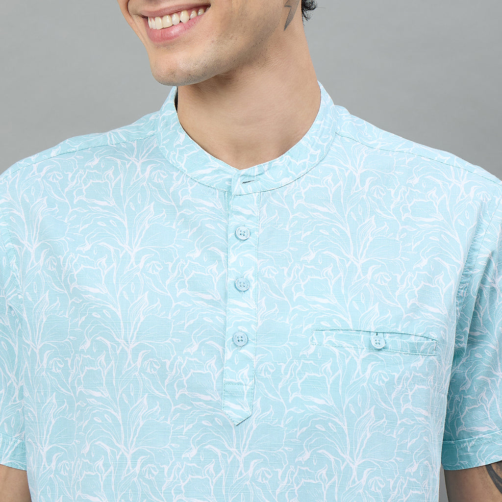 Duke Urban Men Half Sleeve Band Collar Floral Print T-Shirt (LF7532) Duke Urban Men Half Sleeve Band Collar Floral Print T-Shirt (LF7532)