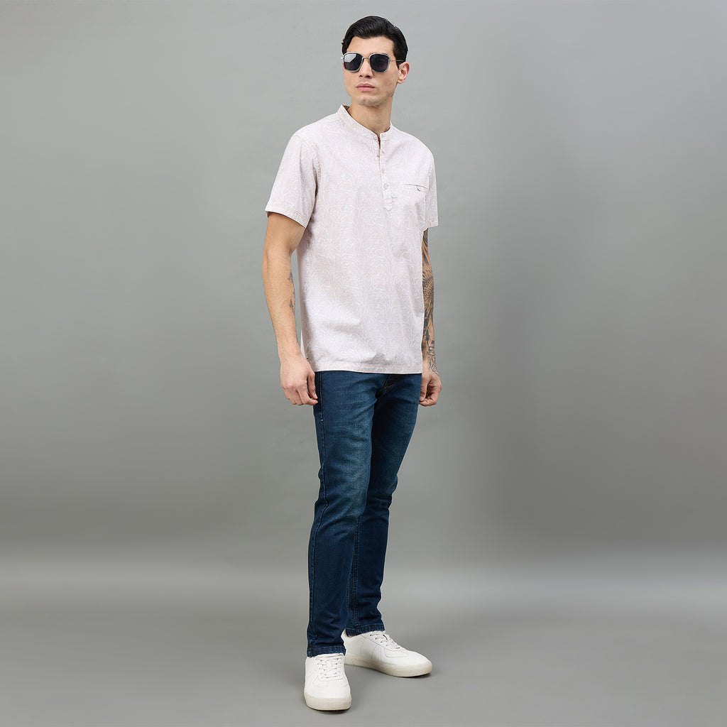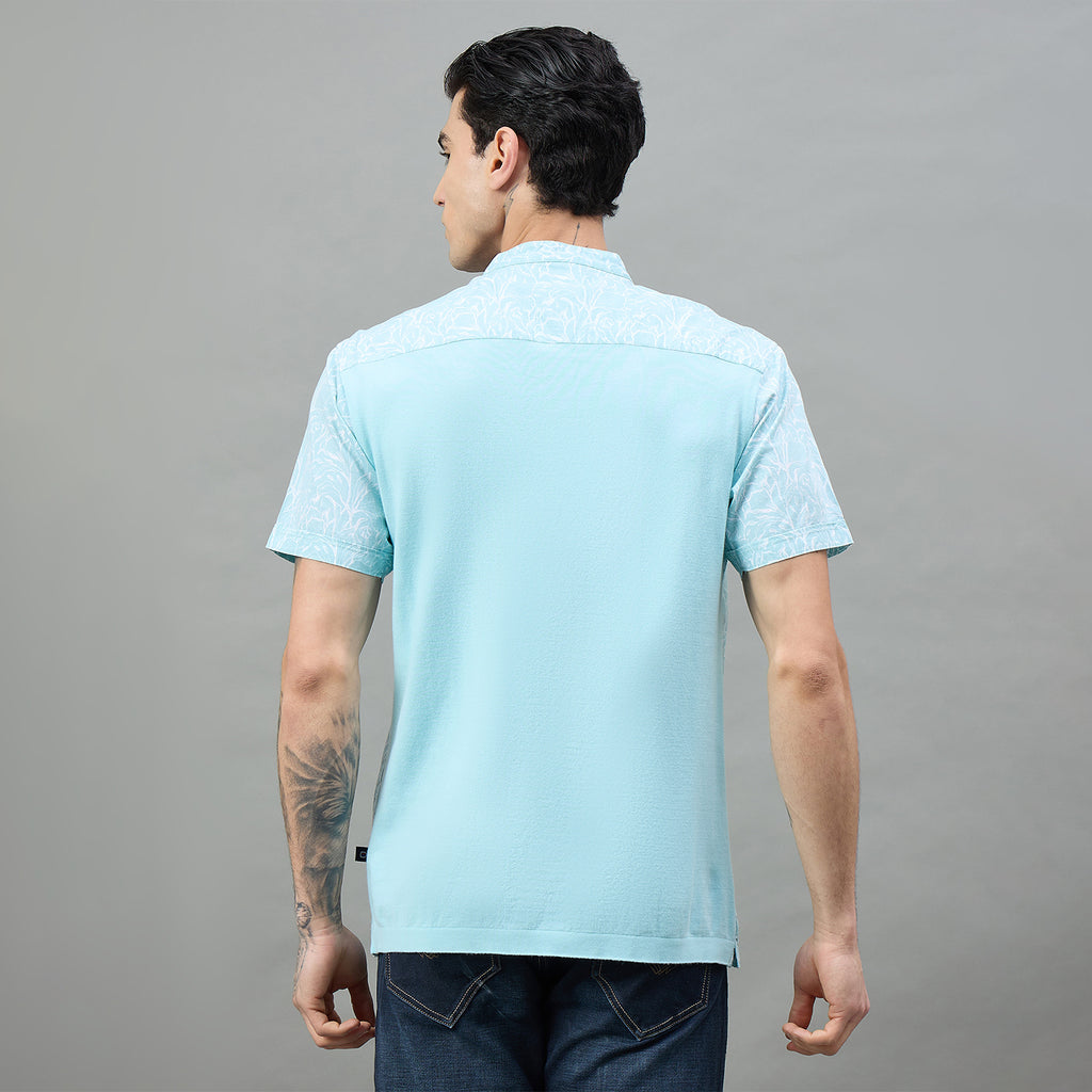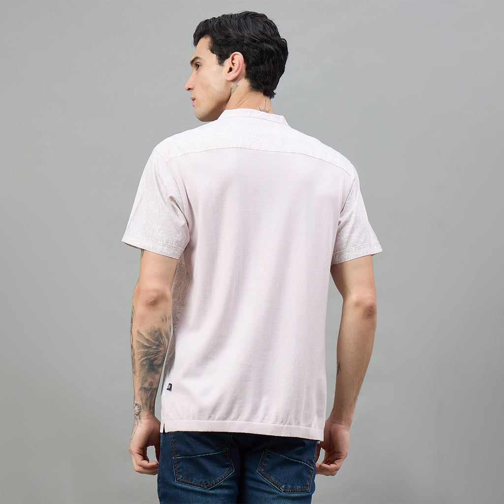 Elevate your casual wardrobe with this stylish half-sleeve t-shirt featuring a distinctive band collar and vibrant floral print. Crafted for comfort and contemporary style, it's perfect for weekend outings or relaxed everyday wear. The eye-catching design adds personality to any look while maintaining a refined aesthetic.