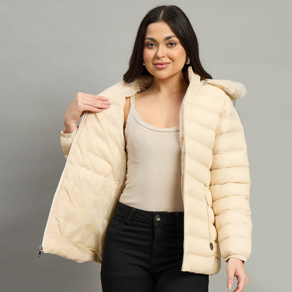Elevate your everyday style with this sleek women's hooded jacket designed for the modern urban lifestyle. Crafted from durable polyester, it offers lightweight comfort without compromising on warmth. The slim fit silhouette flatters your frame while allowing easy movement, making it perfect for layering or wearing solo. Full sleeves provide extended coverage, while the integrated hood adds versatility for unpredictable weather. Whether you're heading to work, running errands, or meeting friends, this jacket seamlessly transitions from day to night, becoming an essential piece in your wardrobe.