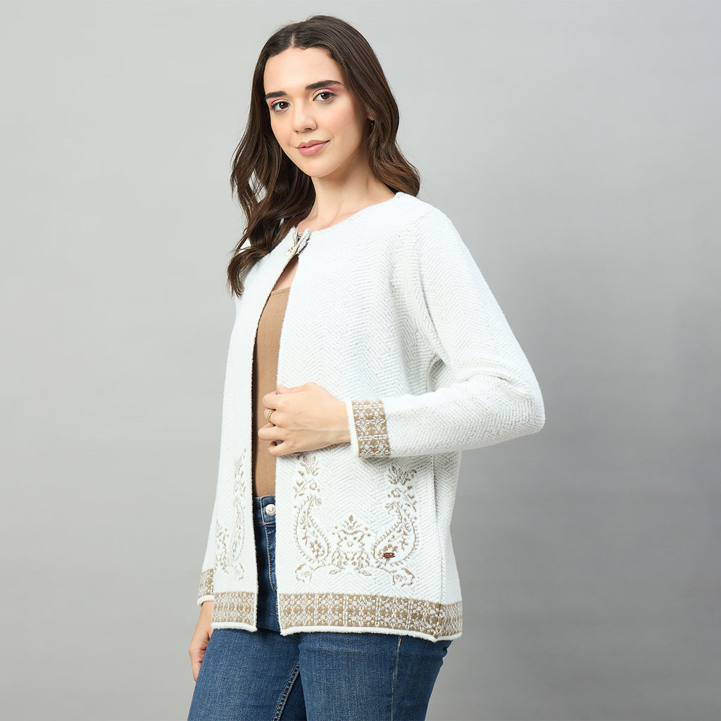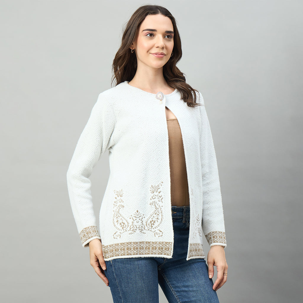 Duke Urban Women Full Sleeve Round Neck Shrug in a comfortable acrylic blend fabric. This regular fit shrug features a classic round neckline and full sleeves, making it perfect for layering over your favorite tops. The soft, breathable material keeps you cozy throughout the day while maintaining its shape wash after wash. Ideal for casual outings, office wear, or relaxed weekends. Effortlessly versatile and easy to style with any wardrobe.
