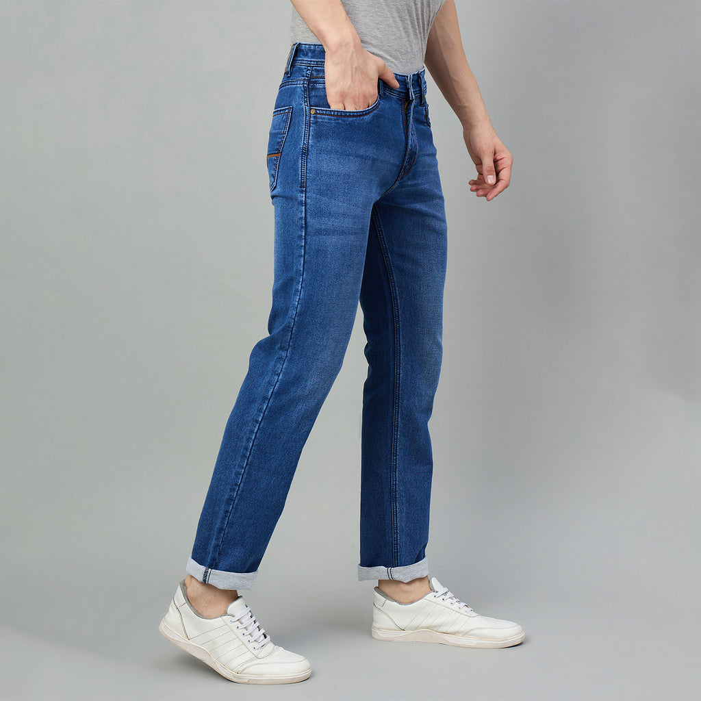 Crafted from a premium cotton-lycra blend, these Duke Men mid-rise stretchable jeans offer a slim fit that contours to your body for a sleek, modern silhouette. The stretch fabric ensures comfort and flexibility throughout the day, making them ideal for both casual and semi-formal occasions. Designed with expert tailoring, these jeans combine durability with style, providing a versatile wardrobe essential that moves with you.
