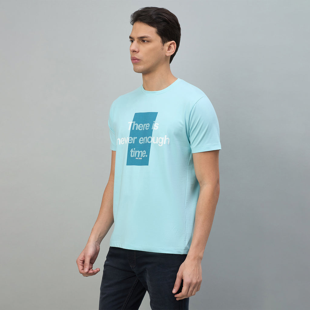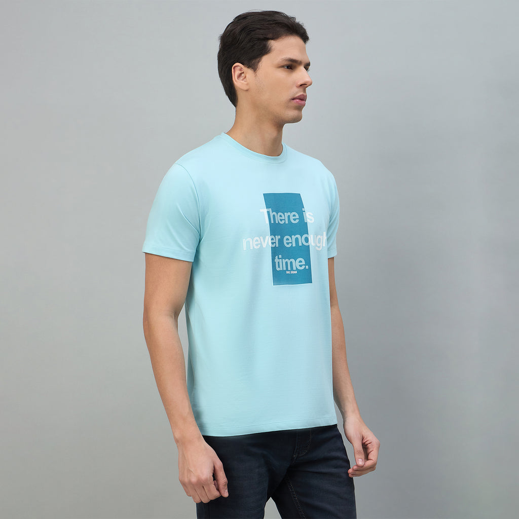 Experience effortless style with this Duke Urban men's graphic print t-shirt, crafted from a comfortable cotton blend fabric. The slim fit silhouette offers a modern, tailored look perfect for casual everyday wear. Featuring a classic round neck and half sleeves, this versatile piece pairs easily with jeans or chinos for a polished casual aesthetic.
